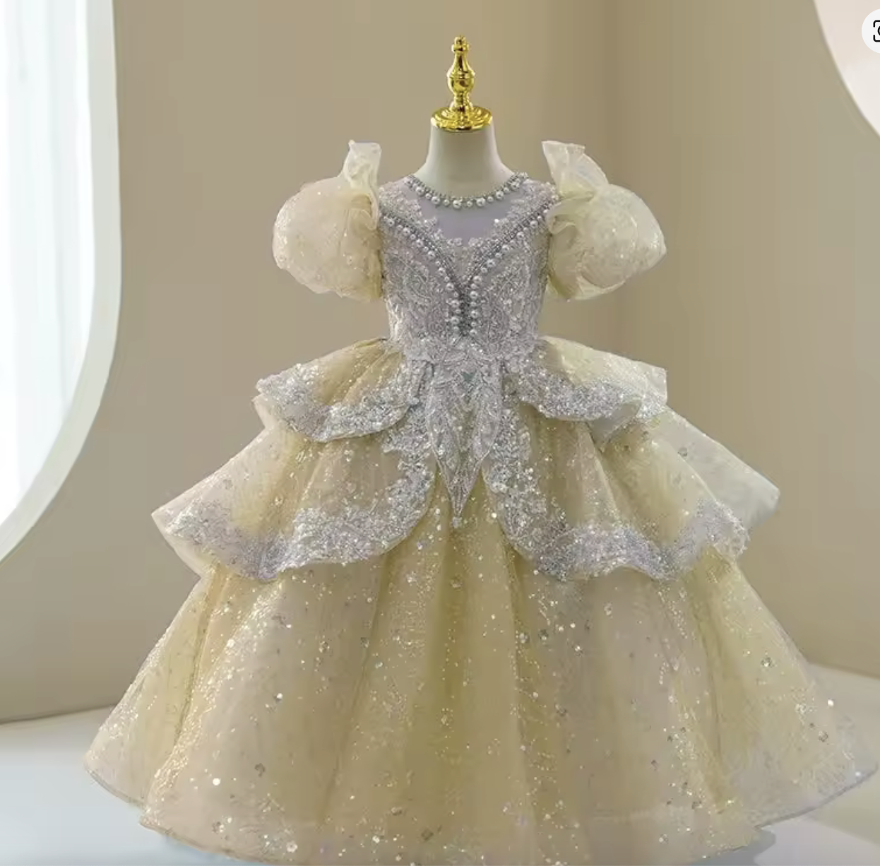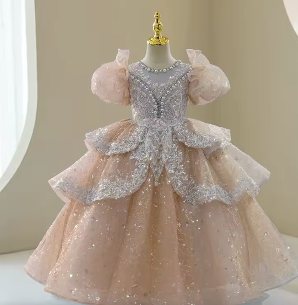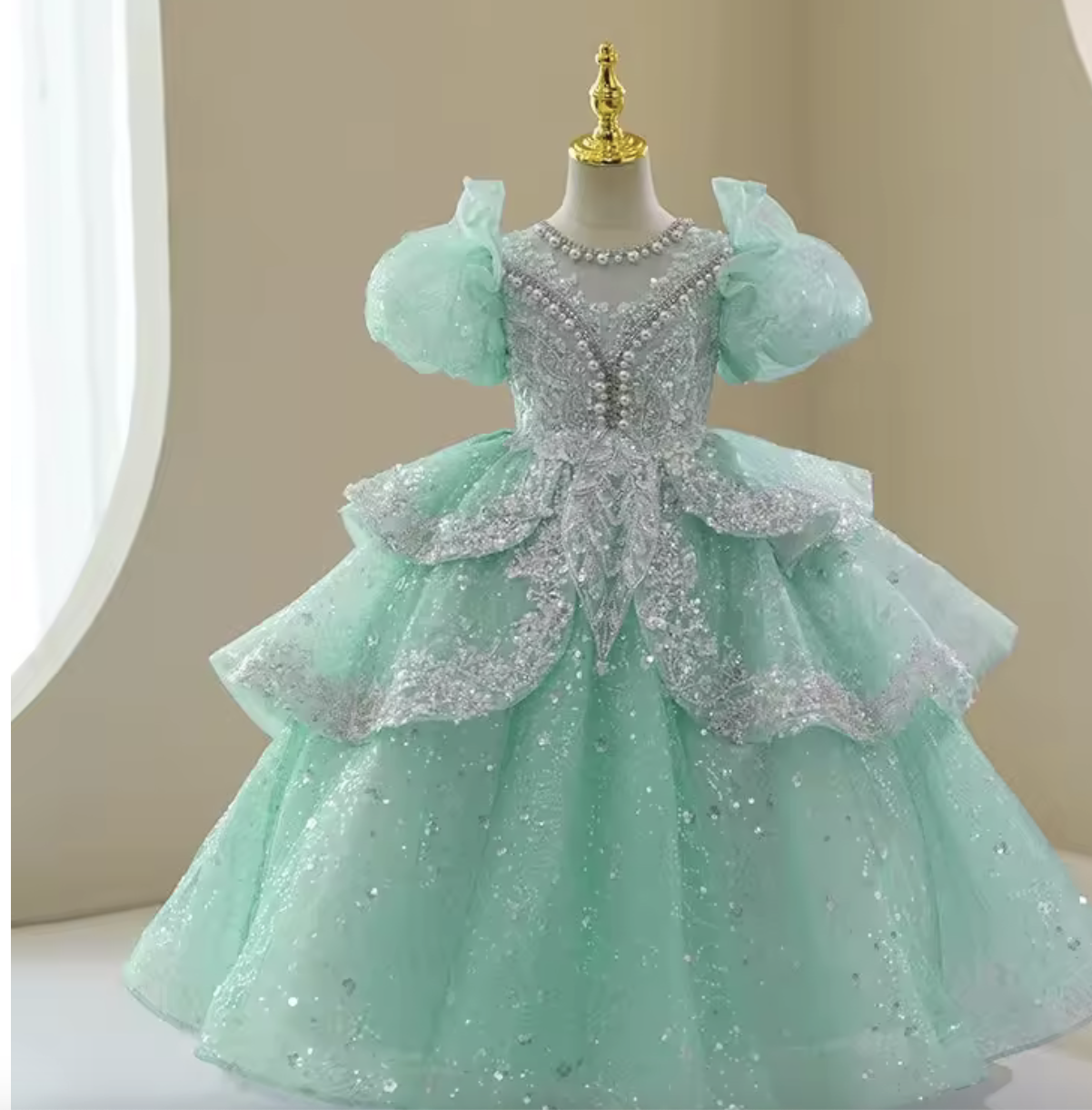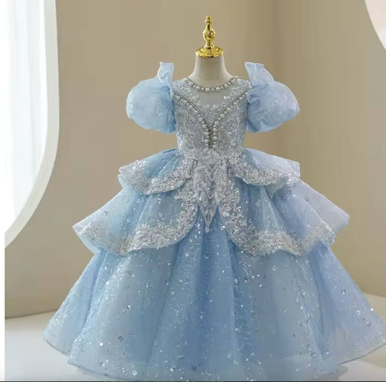 Make every day magical with this shimmering blue princess dress featuring layered ruffles, sparkling sequins, and elegant puff sleeves. Crafted from high quality materials for comfort and style. Perfect for birthdays, celebrations, or fashion show.